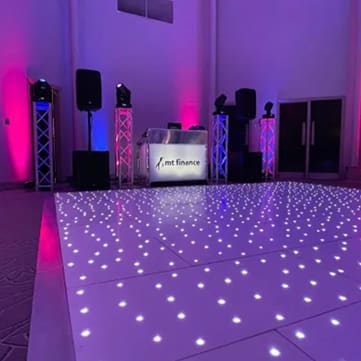 Transform your wedding reception into a scene of celestial beauty with Midlands Entertainment UK's Starlit Dance Floor (14x14ft). Available across Birmingham, Lichfield, Solihull, Sutton Coldfield, and Tamworth, this dance floor adds a touch of magic, making you feel like you're dancing amongst the stars on your special day.